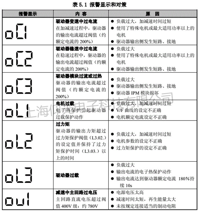 报警原因分析:①系统接地不良,导致编码器受到干扰,电流瞬间过高,出现报警。②老的主板上的PG卡损坏,并且电机做重新自学习时电机会出现OC3报警,且不是LE**报警。③电机的最高扭矩没有限制住。(P306参数设定得太大)。E517适当加大。④大功率驱动器需要将A201参数改为5.且C101及C102参数修改为0.1以上。⑤编码器线路接触不良也容易出现此故障。⑥如在低压力段正常,但在大压力段就容易出现OC3报警,且压力波动大。就是油泵有问题。案例二
